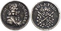 Malý žeton ke korunovaci na římského krále 26.1.1690 v Augsburku. Římská koruna, pod ní nápis / pod zářícím okem meč s vavřínovou ratolestí, opis. Ag 20 mm (1,72 g). Novák-II/X/B.35b. n. nedor., dr. škr.