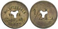 Krásná Lípa (Schönlinde, okr. Děčín). Spolek veteránů, hodnota 1/2 L. Mosaz 21,8 mm, pův. otvor uprostřed. SZ 68 (1991), str. 236-247 R