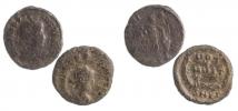 Theodosius I.374-395 AE4 R:Victoria a zajatec,věnec VOT.X MVLT.XX 2ks
