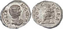 AR Denár, Rv: "PVDICITIA", sedící Pudicitia, RIC.575, S.1748 - mincovna Řím - ražba z let 196 - 211, patina, téměř