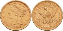 5 Dolar 1895 - hlava Liberty, KM.101 (Au900), 8.359g, nep.hr., nep.rysky, pěkná patina
