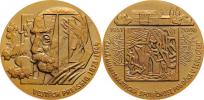 Zeman - svatořečení Anežky České 1989 - hlava čelně, korunka, znaky, nápis / chrámy sv.Petra a sv.Víta, nápis, Sign., patinovaný postříbřený bronz 70mm, tém.
