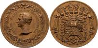 Ludwig I. 1825 - AE nástupní jeton - poprsí zprava / 8-řádkový nápis, Sign.N (J.Neuss), měď 13 mm, patina