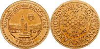 125 let města a 20 let pobočky ČNS v Příboře 1976 - náměstí, znak, opisy / moravská orlice a opis, Sign., zlacený bronz 33 mm, 6.837g, BK.2C, pouze 5ks RRR!
