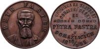 Šmakal - Petr Faster - odhal.pamětní desky 10.9.1899 - poprsí čelně, opis / 8-řádkový nápis, Sign., měď 34 mm, nep.hr., pěkná patina, téměř