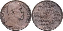 Španiel - úmrtní medaile 1937 - poprsí zleva, vavřín. ratolest, opis / truchl.postava, palmy, nápis, Sign., Ag987, 60mm, 79.828g, Fl.54b, Nov1.1.135a, hr., rys.