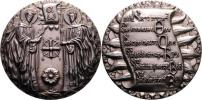 Jsem ražen z českého kovu - 10.výročí republiky 1928 - sv.Prokop orá s čertem, havíř, opis / státní znak, sv.Václav s rytíři, Sign., Ag987, 34mm, 20.098g, hr.