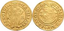 Dukát (1424) b-b/kříž, Buda-Bardi Onofrio, sv.Ladislav, opis / znak se dvěma českými lvy, opis, Len.18/7, Pohl.D2-37, Husz.573, 3.514g, nep.zvlněný