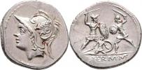 AR Denár, Hlava Marta doleva / souboj tří bojovníků, nápis "Q.THERM.M.F.", Craw.319/1, Seaby.Minucia.19, Alb.1123, nep.exc., nep.nedor.