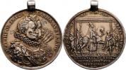 Medaile na holdování ve Vídni 1627 - dvojportrét zprava, opis / pohled na město, andělé se znakem, vročení, zlac.lité Ag 40mm, 23.723g, Nov.J.1a, m.o.