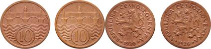 10 Haléř 1926, 1930 (CuZn), nep.hr., nep.rysky 2ks