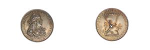 Velkovévodkyně toskánská, manželka Cosmy II. Medicejského Medaile na ovdovění b.l. (1621), portrét velkovévodkyně zleva, opis / páv pod oblaky, opis, Litý bronz 40 mm_R!