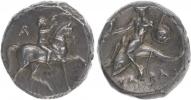 AR Didrachma, sedící Neked na koni zprava / sedící Taras na delfínu bez trojzubce, SG.375