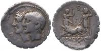 AR Denár, Hlavy Dioscuriů s hvězdou zprava / galéra nápis v úseči "MN FONTEI", Crawford.307/1, S.184, Al.1099, Ves.1106