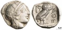 Attica (490-430 PŘ. Kr.) Tetradrachma, hlava Atény, sova, 17,25 g, BMC 43