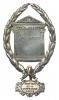 Nový Bohumín (Porta Silesiae) - Uvítací odznak, v oválu svázaném vavřínovými věnci antický chrám s výrem a nápisy PORTA SILESIAE a WILLKOMMEN!, Plech 75x51 mmzavír.jehlice + dole přívěšen štítek s nápisem SANKTION / 10. - 11./WONNENMOND / A.U. - 65 (květen 1924)