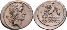 AR Denár, Hlava Bona Eventa s žezlem / orel sedící na blesku, lituus, konvice a nápis "Q.CASSIVS." Crawford.428/3, Seaby.Cassia.7, Alb.1355, exc., pat.