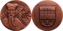 Zeman - 40 let pobočky 1977 - markrabě Jošt čelně, moravská orlice, opis / znak, gotické prvky výzdoby radnice, opis, Sign., patinovaný bronz 70mm, BK.7