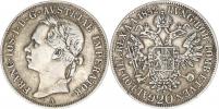 20 kr. 1852 A - hlava vlevo "R" (6,696 g)