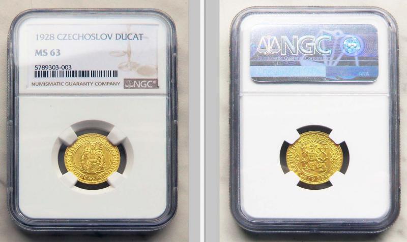 Svatováclavský dukát ročník 1928 v certifikaci NGC MS 63. Au 986 (dukátové zlato 23,7 karátů) - 3,49 g - mincovna Kremnica - vzácnější ročník - náklad pouze 18 000 kusů - certifikace NGC = záruka pravosti a jakosti.  Poštovné po platbě předem 140 Kč, dobírka 210 Kč. Poštovné za dobírku požaduji předem. Možnost osobního převzetí a platby v Bílovci.