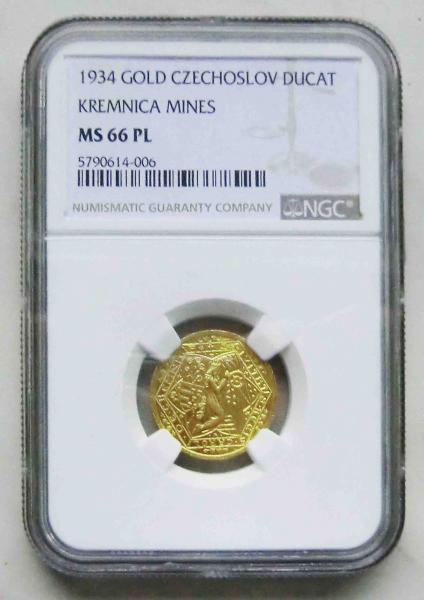 Originál 1 Dukát 1934, Oživení kremnického bánictva, certifikace NGC MS 66 PL. Au 987 (zlato 23,7 karátů) - 3,50 g - 20 mm - vroubkovaná hrana - mincovna Kremnica - velmi vzácná mince - Rarita - náklad pouze 288 kusů !!! - plný ražební lesk v ploše - certifikace NGC = záruka jakosti a pravosti. Jen 7 těchto mincí má vyšší hodnocení !!! Poštovné po platbě předem 370 Kč, dobírka 450 Kč. Poštovné za dobírku požaduji předem. Možnost osobního převzetí a platby v Bílovci.
