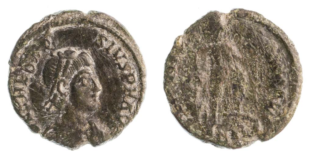 Theodosius I. 379-395 AE3 R:císař a zajatec