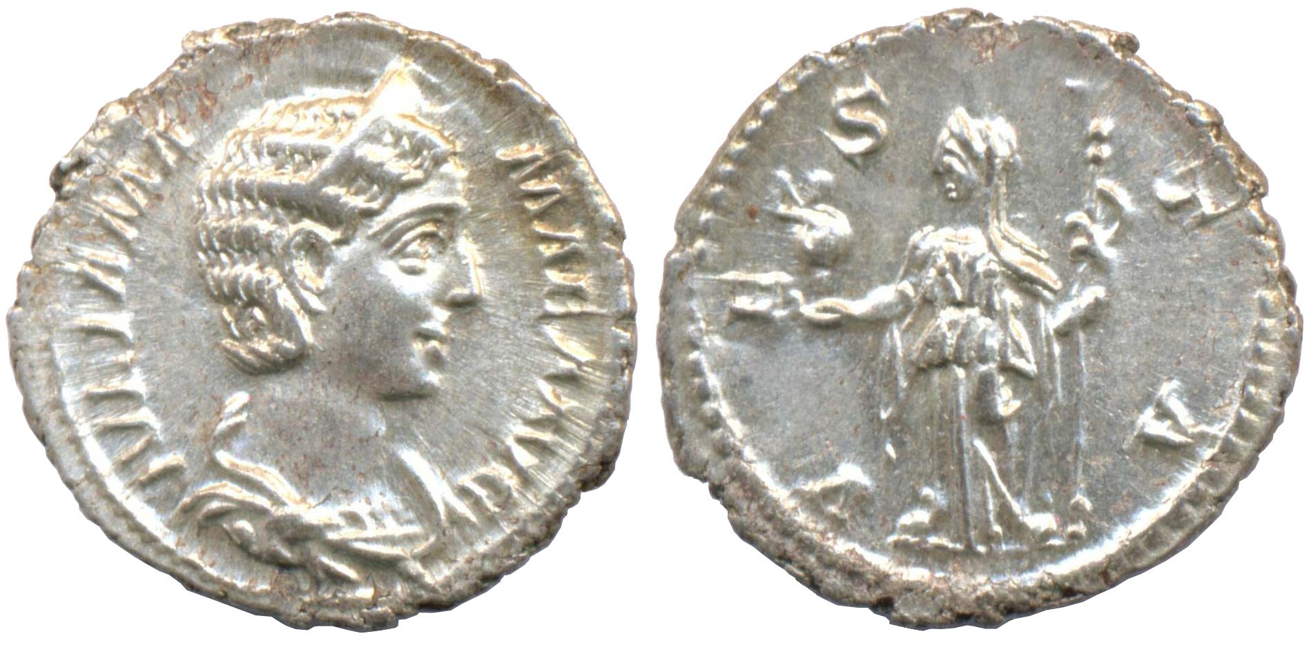 Julia Mamaea, 235, denár, R: Vesta, RIC.360