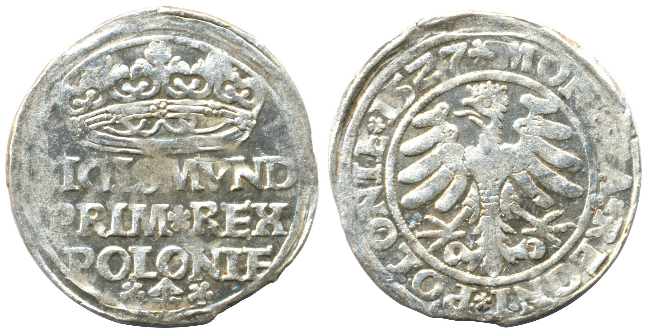 Polsko, Zikmund I. 1506-1548, groš koruní 1527, Krakov, var.značky mincovny, Kop.417var. 1587-1632 ort 1625, Krakov