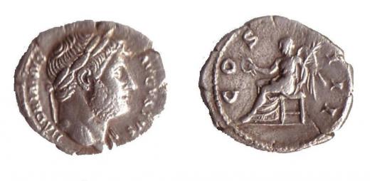 AR denár. L: Ověnčená hlava zprava. R: sedící Victoria, COS III. 2,56 g. S 361A excentr. napr. střížek