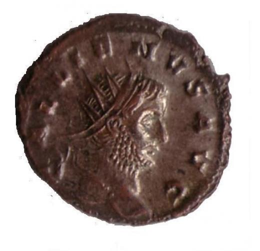 Billon. antoninian. L: hlava s paprskovou korunou zprava, GALLIENVS AVG, R: stojící Pax vlevo, drží žezlo a olivovou snítku, PAX AVG, SI, minc. Siscia, 3,24 g. mírně excentrický
