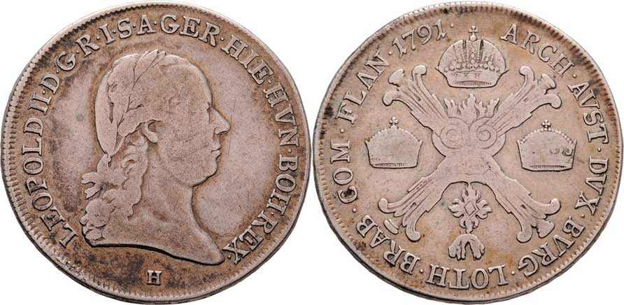 1/2 Tolar křížový 1791 H, Günzburg, P.14, M-A.294, 14.456g, dr.hr., dr.rysky, patina R!