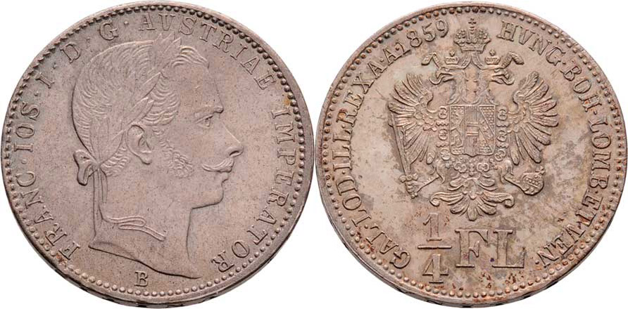 1/4 Zlatník 1859 B, 5.344g, nep.hr., nep.rysky, pěkná patina
