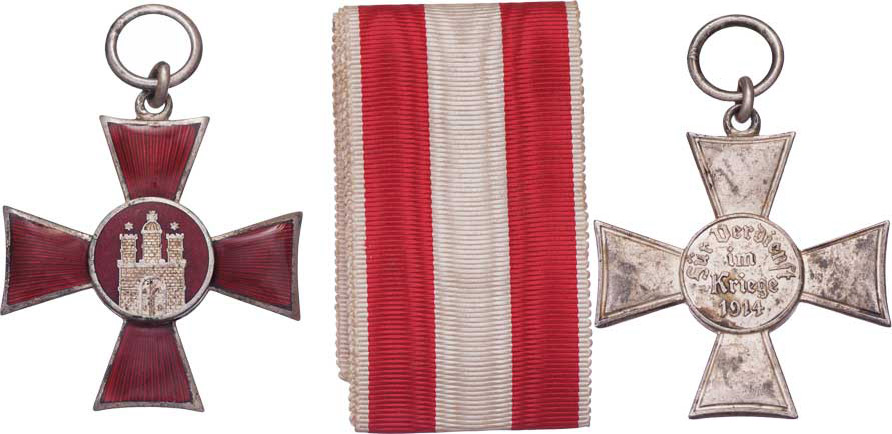 Kříž za válečné zásluhy 1914, BB.11, Nimmergut.688, postříbřený a smaltovaný bronz 40x40 mm, s původním ouškem a závěsným kruhem, s přiloženou původ. stuhou