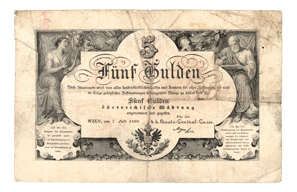 5 Gulden 1866, Ri.139b, Pick.A151b - série Eg18, natrž.