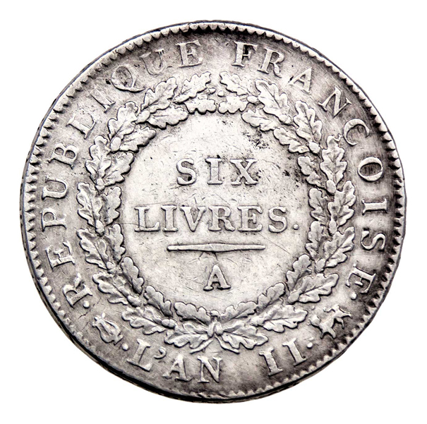6 Livres, rok 2 = 1793 A, Paříž, KM.624.1, 29.167g, dr.vady materiálu, dr.hr., dr.rysky