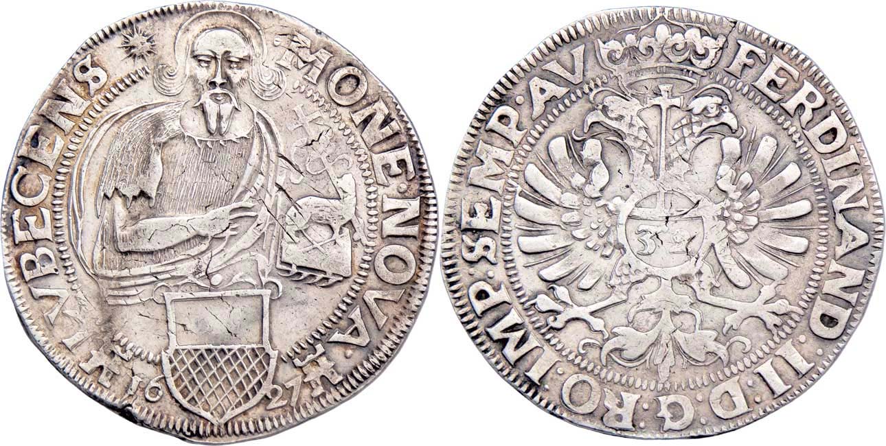 Tolar 1627 - s titulem Ferdinanda II., KM.54, Dav.5449, 28.835g, dr.vady materiálu, nep.nedor., pěkná patina R!