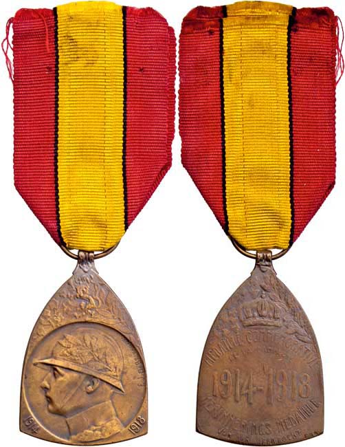 Albert - válečná pamětní medaile 1914 - 1918, BB.146, Sign.Bremankur, původní stuha