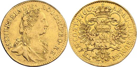 Dukát 1760, Karlovský Bělehrad, N.115, KM.610, 3.203g, mírně okrájený, mírně zvlněný, dr.rysky R!