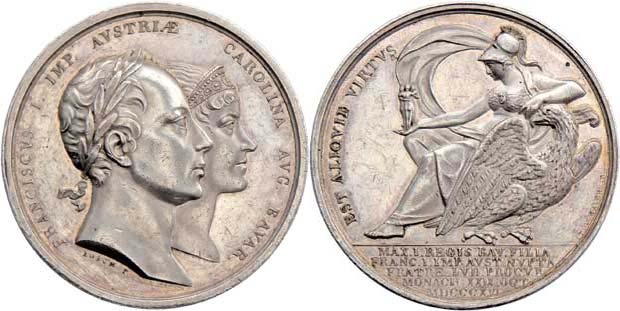 Losch a Stiglmaier - AR zásnubní medaile 29.X.1816 - dvojportrét zprava, opis/ sedící Aténa a orel, písmo, Ag 41mm, 29.219g, M.2461, H.3448, nep.hr., nep.rysky