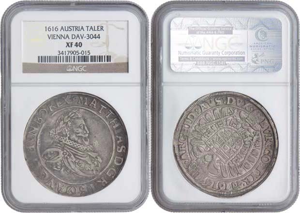 Tolar 1616, Vídeň-Felner, M-A.103, nep.nedor., nep.dvojráz, pěkná patina, mince je zatavena v etui NGC, uvedena zachovalost "XF40" R!