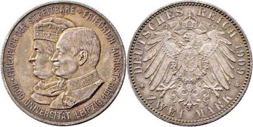 2 Marka 1909 - Universita Lipsko, KM.1268, 11.108g, krásná patina