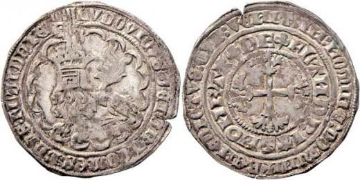 Dvougroš b.l., sedící lev s přilbicí a korunou na hlavě, opis / kříž a dvojitý opis, FW.II.11497, De Wit.I.1321, 4.089g, nep.nedor., pěkná patina R!