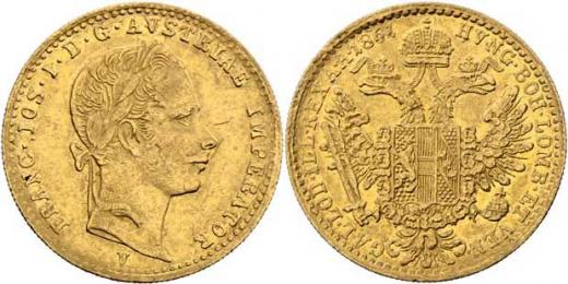 Dukát 1861 V, 3.422g, dr.hr., dr.rysky, patina RR!