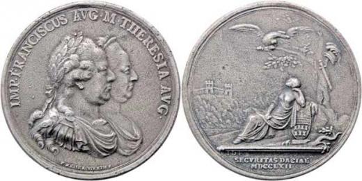 Kaiserwert - upevnění hranice v Sedmihradech 1762 - dvojportrét zprava, opis / sedící Dacia, císař.orel, opevnění a nápis, lité železo 59mm, jako M.1903, pat.
