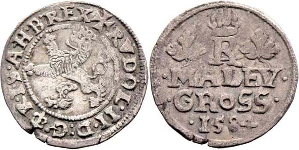Malý groš 1584, Praha-Ercker, HN.20b (opis 6c), nápis ". MALEY ./. GROSS ./. 1584 ", 1.122g, nep.nedor., nep.napr., pěkná patina