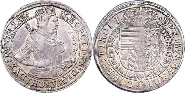 Tolar 1632, Hall - arcivévoda ve světském šatě, M-A.129, KM.804.2, Dav.3338, 28.438g, nep.nedor., nep.vady razidla, nep.dvojráz, pěkná patina