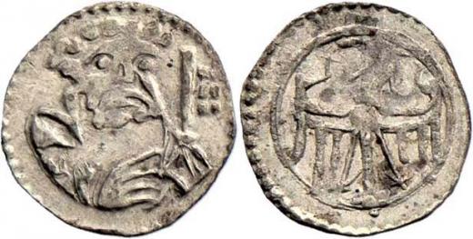 Haléř (cca 1425), Kop.8656, Fried.177, Sa.75 (obr.1), jemnější (patrně novější) provedení, 0.337g R!