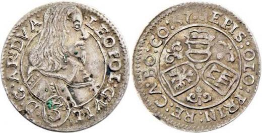 3 Krejcar (16)57, S-V.129 (B2/D3 - značka mincmistra "had" za letopočtem), 1.373g, nep.vady materiálu, nep.nedor., nep.skvrnky, patina R!
