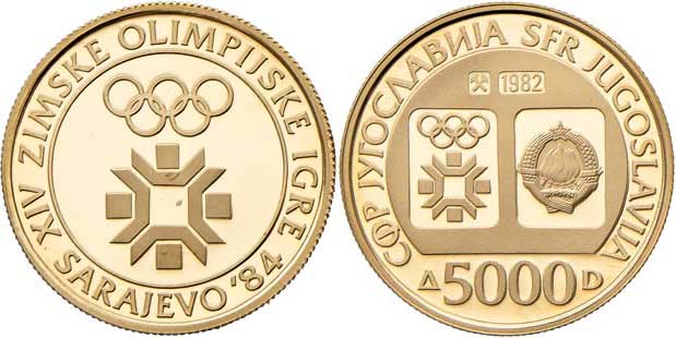 5000 Dinar 1982 - ZOH Sarajevo 1984 - emblém, KM.95, 8.082g, kapsle