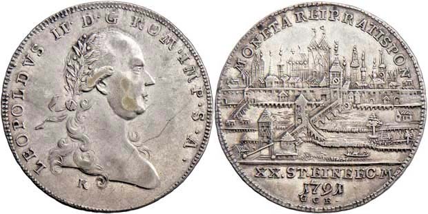 1/2 Tolar 1791 K/GCB - Leopold II. / pohled na město, KM.463, 13.943g, nep.hr., nep.rysky, pěkná patina R!